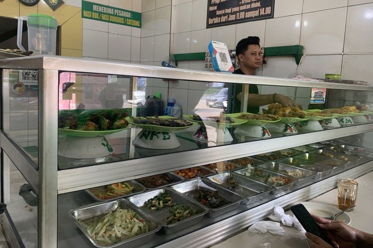 Etalase berisi puluhan lauk tersusun rapi, dari orek tempe, ayam goreng, hingga sayur lodeh yang masih mengepul.