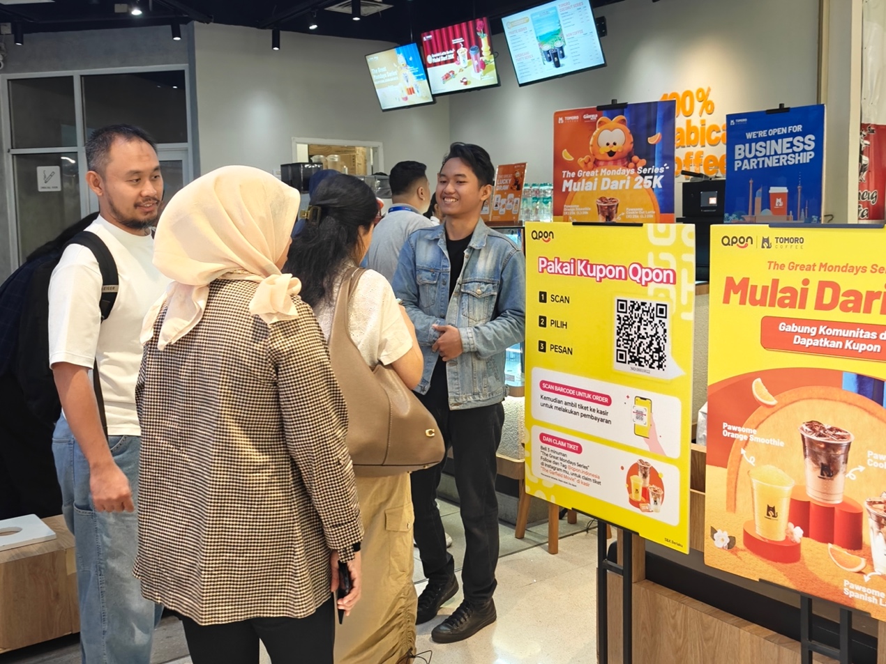 Qpon Indonesia, penyedia solusi canggih digital untuk restoran bermitra dengan franchise kafe terkemuka, TOMORO COFFEE. Mereka menghadirkan kampanye promosi The Great Monday melalui Qpon Station dengan konsep bagi-bagi voucher online yang bisa di-redeem di outlet TOMORO yang berlangsung dari 27 Mei hingga 6 Juni 2024.
