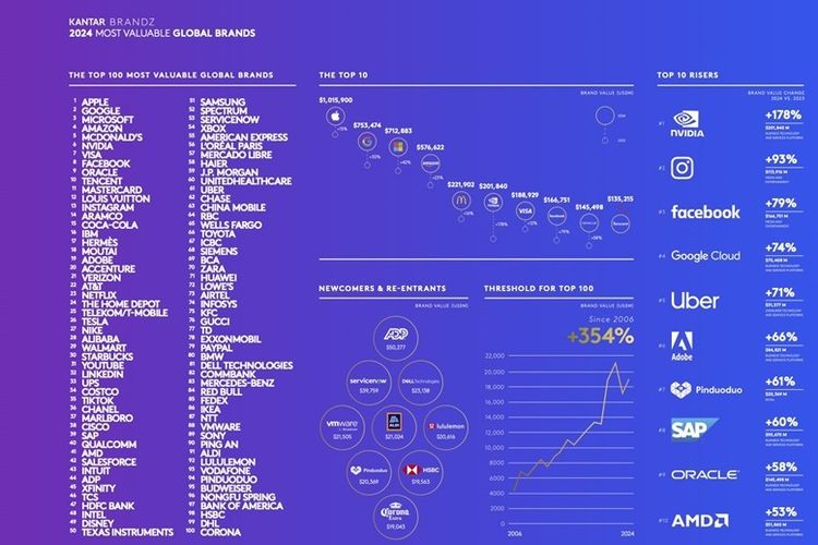 Kantar 100 merek paling berharga di dunia 2024 versi Kantar