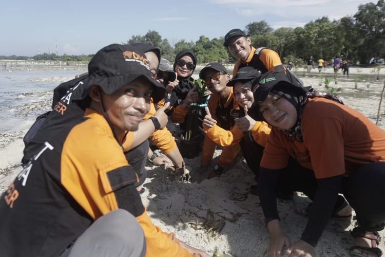 DOK. Dompet Dhuafa. Kolaborasi WALHI dan DMC Dompet Dhuafa dorong perlindungan dan pemulihan wilayah pesisir dari ancaman bencana iklim dengan langkah menanam 1000 bibit mangrove yang diawali di kawasan Pulau Pari,Kepulauan Seribu,pada Senin (8/7/2024).