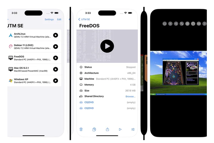 Kemudian,UTM: SE Retro PC Emulator disebut dapat menyimulasikan komputer dengan arsitektur x86,PPC,serta RISC-V. Aplikasi ini dibuat berdasarkan emulator QEMU yang populer.