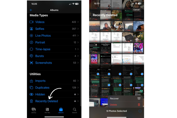 Nantinya foto-foto duplikat di galeri iPhone yang sudah terhapus akan masuk di galeri foto-foto khusus yang terhapus. Untuk selengkapnya Anda bisa menghapus secara permanen dengan cara berikut ini.