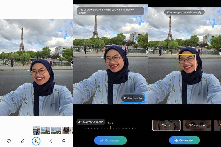 Salah satunya Portrait Studio dari rangkaian fitur Photo Assist. Portrait Studio menggunakan AI generatif untuk menyulap foto asli menjadi avatar AI. Pengguna bisa memilih model avatar AI yang diinginkan seperti ala karakter komik dan kartun,lukisan cat air,serta sketsa.