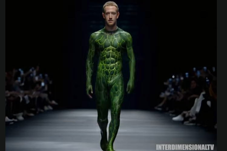 YouTube CEO Meta Mark Zuckerberg dalam video AI fashion show yang dibagikan oleh Elon MuskAdapun hal ini merujuk pada teori konspirasi bahwa Zuckerberg merupakan manusia kadal alias lizard person. Konspirasi ini muncul karena adanya pengguna yang menilai cara bicara dan gerak-gerik Zuckerberg,aneh dan tidak "mirip" manusia.Video AI tersebut pun diakhiri dengan Bill Gates yang mengenakan jas hitam putih,berbeda dari berbagai tokoh sebelumnya yang memakai kostum yang unik,sebagaimana dikutip KompasTekno dari X,Kamis (25/7/2024).Bill Gates tampak tersenyum sambil membawa laptop,yang layarnya dihias tulisan "Runway of Power". Tulisan tersebut pun berubah menjadi eror Blue Screen of Death (BSOD) yang belakangan ini menjadi perbincangan.