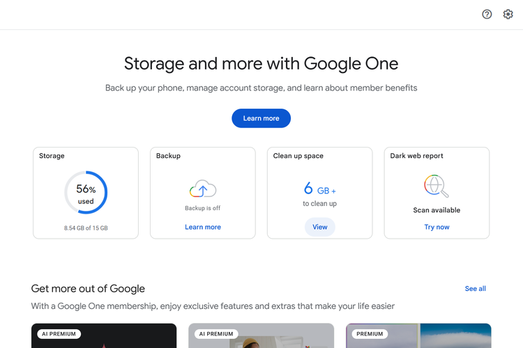 Setiap akun Google bakal diberikan ruang penyimpanan Cloud sebesar 15 GB secara gratis. Ruang penyimpanan itu digunakan secara bersamaan oleh beberapa layanan Google,seperti Google Drive,Gmail,dan Google Photos.