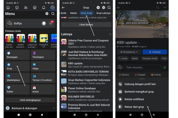 Cara keluar grup FB tidak penting lewat HP