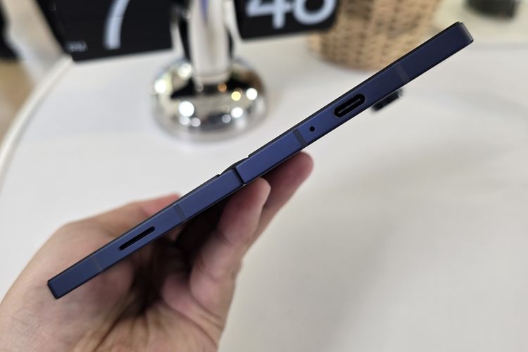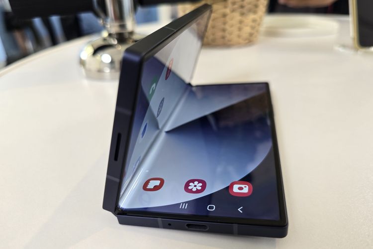 KOMPAS.com/Galuh Putri Riyanto Saat dibentangkan,Samsung Galaxy Z Fold 6 memiliki ketebalan 5,6mm. Sedangkan saat dilipat,ketebalannya mencapai 12,1mm.