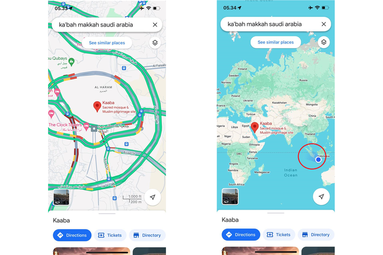 Selanjutnya,Google Maps bakal menunjukkan titik lokasi Ka’bah.