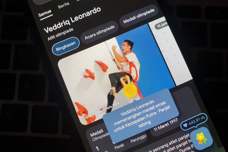 Nah,"medali emas" Google diberikan lewat mesin pencari (search engine) Google Search. Tentu saja bukan medali emas asli yang muncul,melainkan elemen serupa medali emas yang menyembul ketika menelusuri kata kunci "Veddriq Leonardo" atau "Rizki Juniansyah" di Google Search.