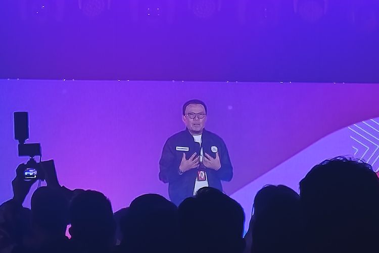 Kompas.com/BILL CLINTEN Direktur Utama Telkomsel,Nugroho dalam acara Media Update yang digelar di Telkomsel Smart Office,Rabu (7/8/2024).