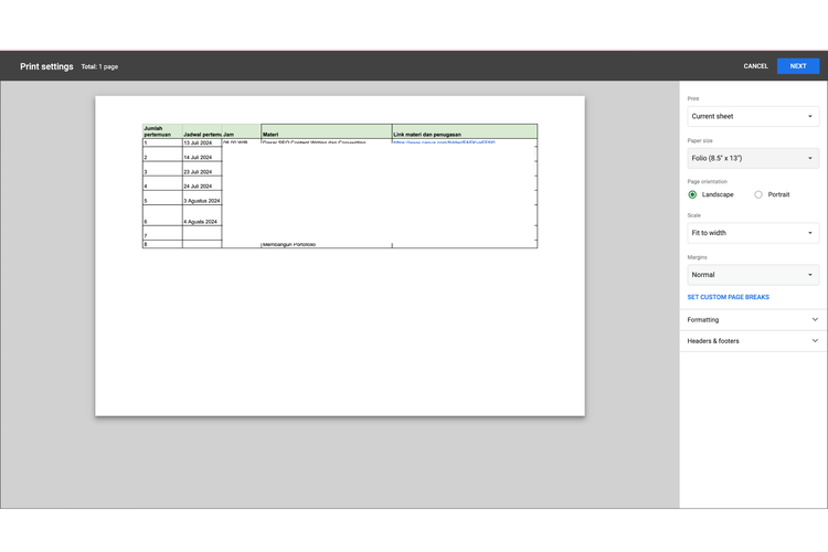 Itulah cara mengatur print di area Google Sheets dengan mudah. Selamat mencoba.