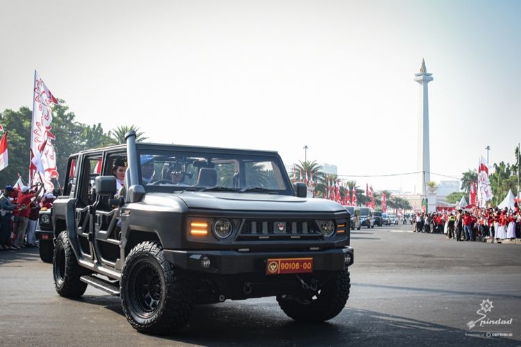 Kemudian ada satu unit tambahan MV3 - Maung Komando disiagakan di bagian belakang rangkaian kendaraan untuk mengantisipasi terjadi hujan di perjalanan.