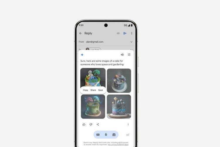 Karena terintegrasi dengan aneka produk Google,tugas yang bisa dijalankan Gemini Live juga akan terasa interaktif. Contohnya,pengguna bisa meminta membuatkan gambar ilustrasi ke Gemini,kemudian memilih gambar yang diinginkan dan menyeretnya (drag) langsung ke Gmail.