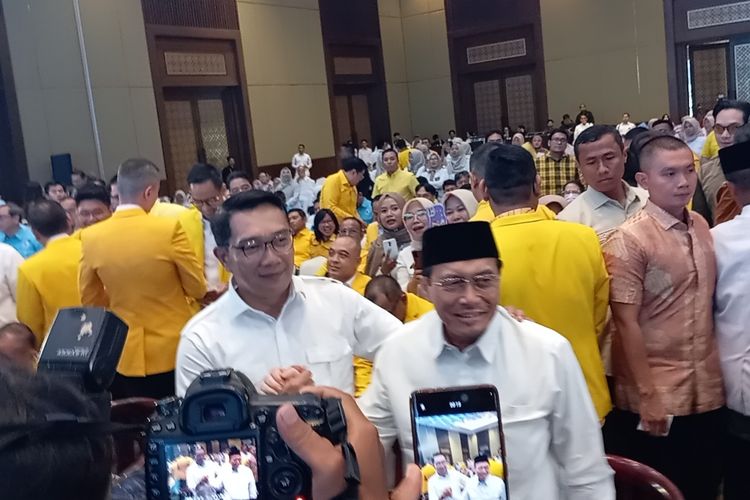 JAKARTA,KOMPAS.com - Ridwan Kamil dan Suswono kompak mengenakan kemeja warna putih dan celana krem saat menghadiri acara deklarasi keduanya sebagai bakal pasangan calon gubernur dan wakil gubernur Pilkada Jakarta 2024 di Hotel Sultan,Jakarta Pusat,Senin (19/8/2024).