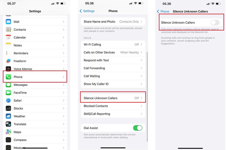 Pada iOS 13 dan yang lebih baru,iPhone dibekali fitur bawaan untuk bisa menolak otomatis panggilan dari nomor tidak dikenal. Adapun cara menolak otomatis panggilan nomor tidak dikenal di iPhone adalah sebagai berikut: