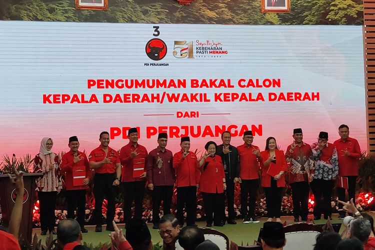 PDI-P hari ini mengumumkan 60 calon kepala daerah,yang terdiri dari 6 bakal calon gubernur dan wakil gubernur,38 bakal calon bupati dan wakil bupati,serta 16 bakal calon wali kota dan wakil walikota.