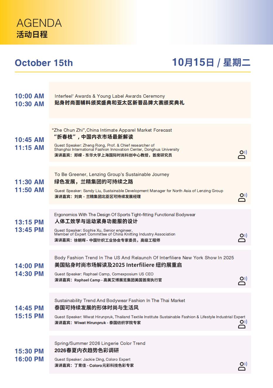 Interfiliere Shanghai 2024 is to be featured with a number of campaigns, such as 2026 spring and summer vogue trends, prototype fashion shows, green planet, renowned university-industry cooperation, COLORO-Yuancai cooperation, Interfeel 'AWARDS ceremony, high-quality meetings and forums, business and trade matchmaking meetings, Interfiliere Shanghai× Sportsinnov. Club Private Sharing, Interfiliere Shanghai's 20th Anniversary Cocktail Club, and various trend releases. In addition, more than 10 industry big names are to talk about hot topics in the underwear fashion industry. Well-known underwear brands, sportswear brands, swimwear brands, home clothing brands, etc. both at home and abroad are to be integrated into one of the main target markets for Interfiliere Shanghai by virtue of the concept of underwear fashion in a broad sense to expand the scope of buyers so as to achieve the purpose of expanding market channels and enhance the effect of Interfiliere Shanghai as an exhibition event. In the meantime, business development will be accelerated by creating exhibition scenes to help enterprises enhance the influence of their brands in the market both in China and abroad.