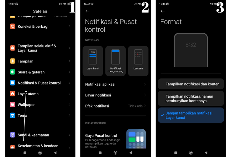 Pengaturan ini akan membantu menghilangkan notifikasi aplikasi pada saat layar terkunci.