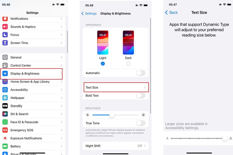 Untuk memperbesar huruf di WA iPhone,pengguna bisa melakukannya melalui menu pengaturan ponsel. Ukuran huruf yang diatur di menu pengaturan iPhone bakal diterapkan di WhatsApp juga. Adapun cara memperbesar tulisan di WA iPhone adalah sebagai berikut.