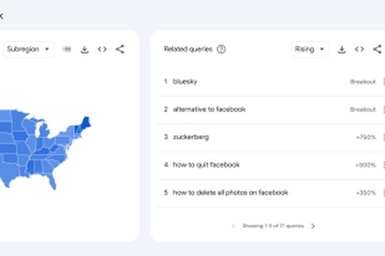 Sontak kebijakan ini membuat warga AS ingin menghapus akun mereka yang terafiliasi dengan Meta. Dilaporkan TechCrunch,kata kunci yang berkaitan dengan cara menghapus akun Facebook,dan Threads meningkat drastis di mesin pencari (search engine) Google Search.