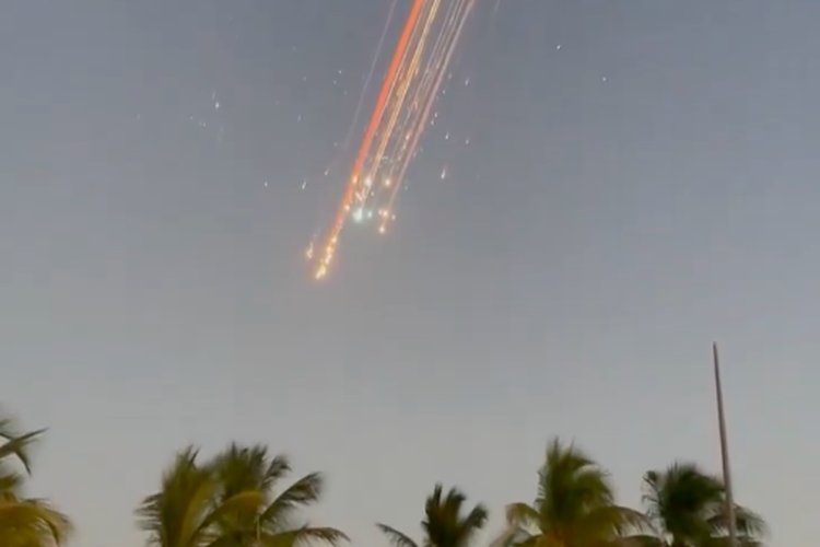 iDoPress - Megaroket Starship milik SpaceX meledak di udara saat uji coba peluncuran yang ketujuh dari lokasi markasnya,Starbase,di Texas Selatan. Puing-puing roket tampak terbakar dan jatuh di langit perairan Karibia,menyisakan lintasan garis-garis asap di angkasa.