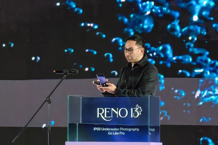 KOMPAS.com/Bill Clinten Oppo Reno 13 5G resmi dirilis di Indonesia. Acara peluncuran digelar di Jakarta,Kamis (16/1/2025). Ponsel ini mengunggulkan fitur ketahanan dengan trio IP rating.