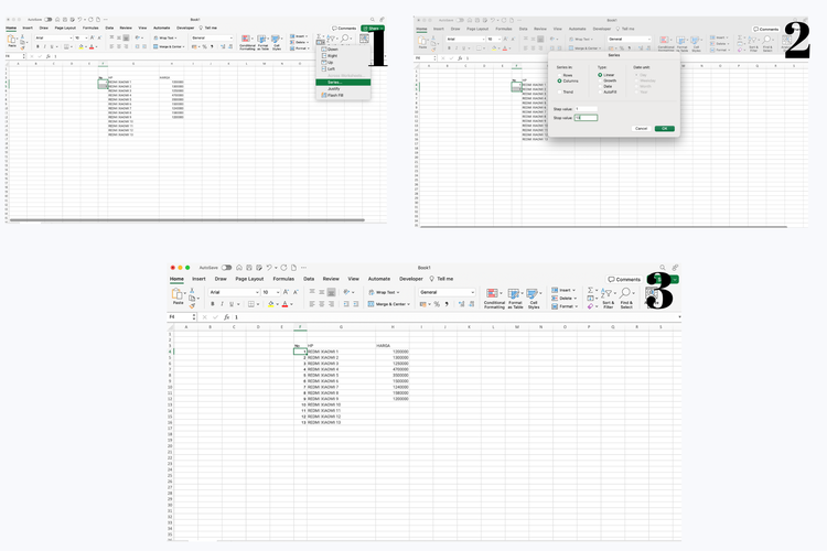 Klik “Fill Series” Nantinya nomor yang sama akan otomatis berubah sesuai urutan