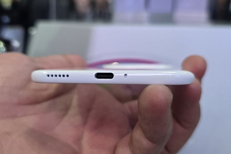 KOMPAS.com/ Galuh Putri Riyanto Untuk mencapai bodi yang sangat tipis,Tecno mengatakan pihaknya juga harus menggunakan port USB Type-C dan speaker yang didesain khusus.