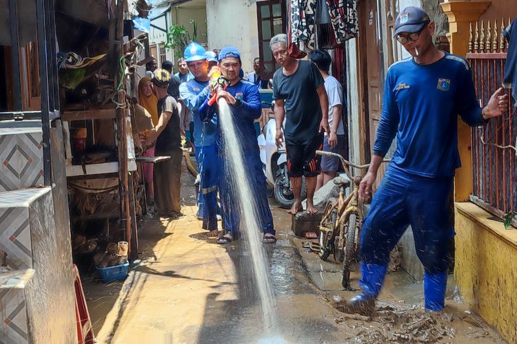 "Gulkarmat menurunkan pompa fire pump,dari warga juga ada pompa,dibantu dengan selang,kami coba bantu untuk membersihkan,dengan personel SDA yang kita turunkan itu 15-20 personel," ucap Albert.